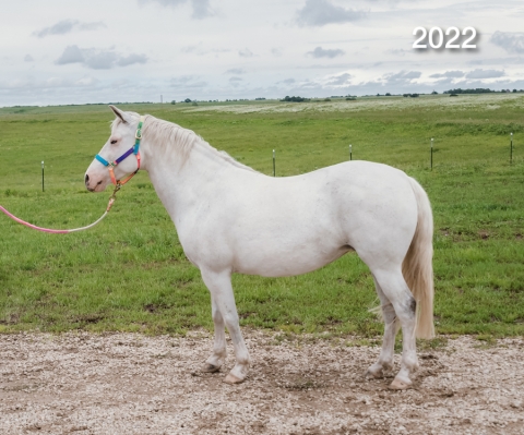 The daughter of a captured BLM Mustang, Celeste was born and spent the first 10 months in a pasture with no human interaction. Her dam, Rena, had been abandoned by her owner and left with no care, even as a life grew within her. Luckily, the green grasses and a nearby pond provided Rena with the nourishment she needed to bring the healthy filly to term. Because of her abandonment, Celeste had many baby lessons to learn, but she has proved to be a bold and curious mare who learns quickly. Celeste has completed her ground training but has proven very unpredictable with saddle work. She will only be adopted out as a companion horse.